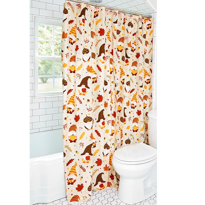 You’ll go “nutty” over the Gnome Acorn Shower Curtain, Valance, or Set of 12 Hooks. Shower Curtain features cute gnomes in shades of brown, orange and yellow, perfect for adding a touch of Autumn to your bath. Valance has a checkered pattern and the Set of 12 Shower Hooks are a cute mushroom shape.