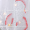Brighten up a room using this Pre-Lit Santa Window Panel. It’s made of lace with LED lights illuminating a colorful Santa design. The back of the panel has knitted holes through which you insert the 20 lights it comes with. A pocket at the bottom hides the battery box, which has a switch to turn the lights on and off. A 1-1/2″ rod pocket makes hanging easy.